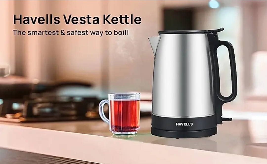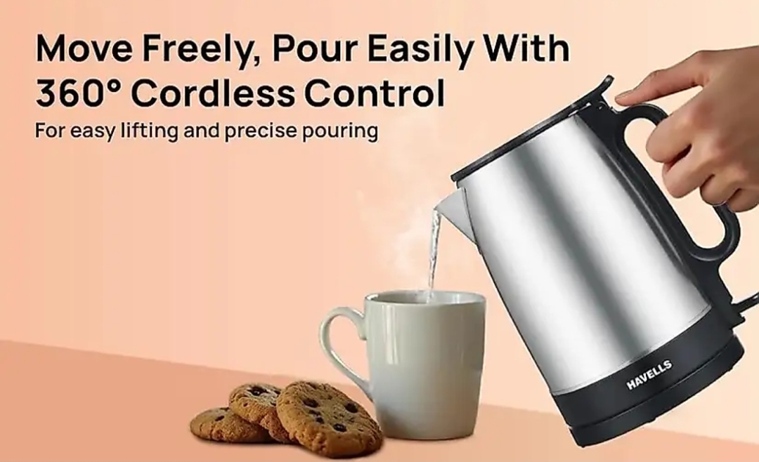 Bring home the Havells Electric Kettle – a blend of speed, safety, and smart design.