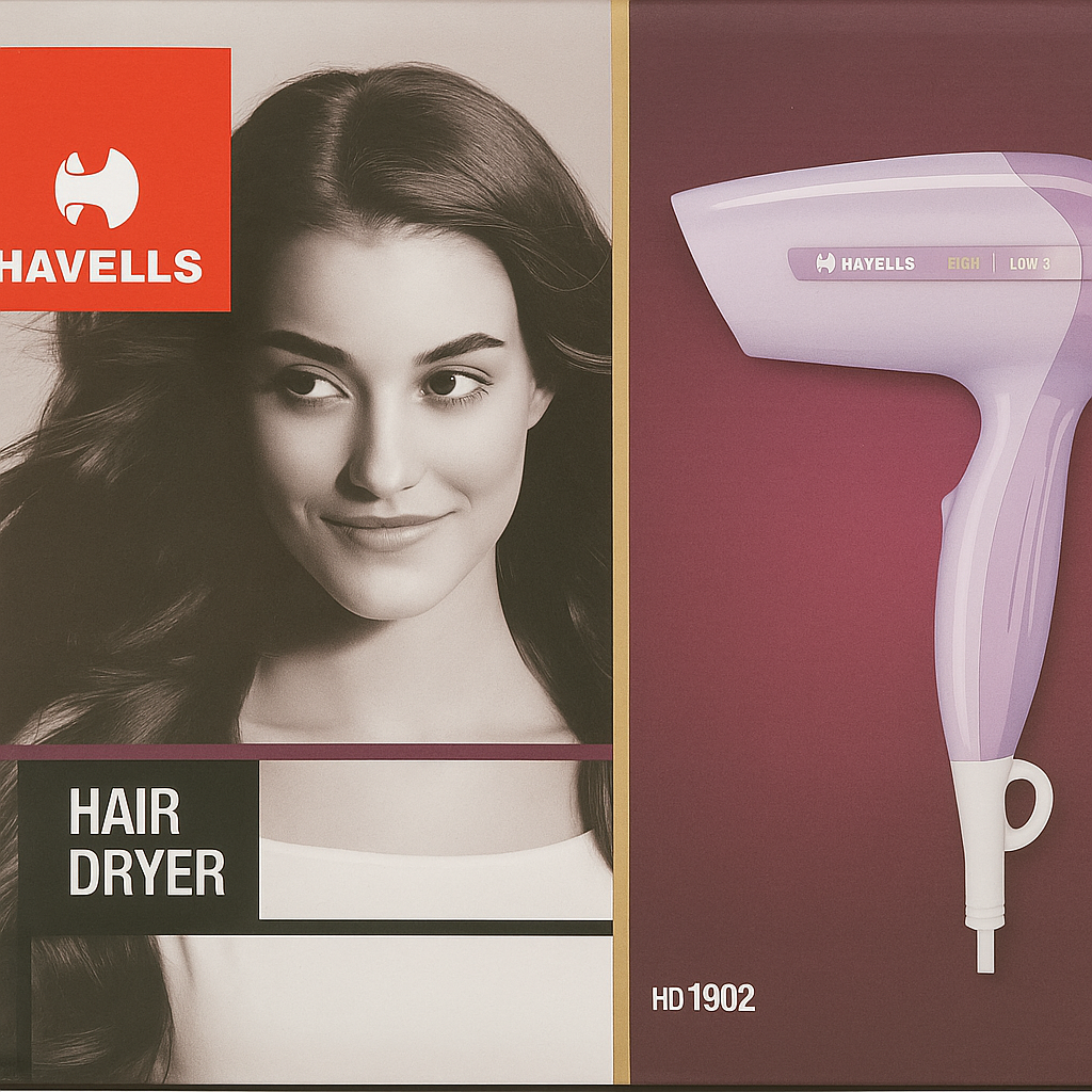 The Havells HD1902 Hair Dryer is your perfect daily styling partner. Designed with elegance and efficiency in mind, this compact dryer comes in a beautiful lavender shade and is equipped with a powerful 1200W motor. Whether you’re preparing for a meeting or a night out, the HD1902 ensures fast and gentle drying with dual heat/speed settings (Low & High), making it suitable for all hair types.