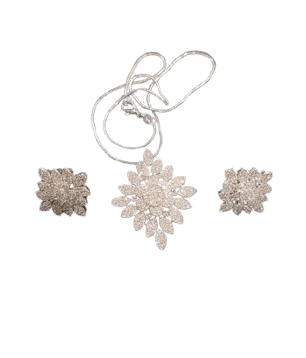 Be the first to review “Women’s Silver-Plated CZ Diamond Floral Pendant Necklace with Matching Earrings – Stylish Party & Wedding Jewellery Set”