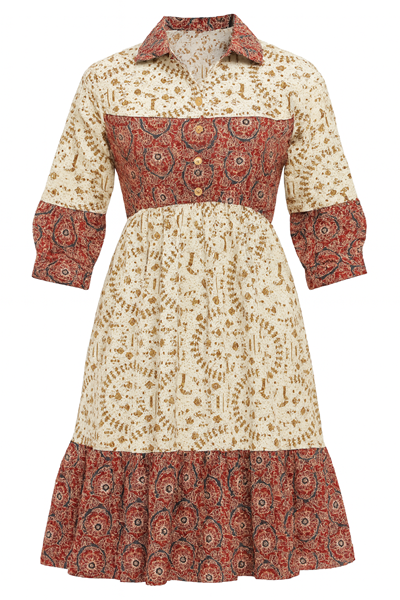 Step into timeless elegance with this women’s cream and maroon handblock-inspired cotton dress, blending comfort with artistic ethnic prints. Made from soft and breathable 100% cotton fabric, this fit-and-flare dress keeps you cool and stylish all day long.