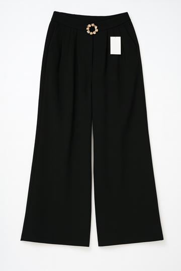 Upgrade your wardrobe with these chic women’s black wide-leg palazzo pants, designed for all-day comfort and effortless style. Made from premium quality fabric, these pants feature a stretchable elastic waistband for a snug yet relaxed fit, along with pleated detailing that adds a touch of sophistication. The standout decorative golden rhinestone buckle enhances its trendy appeal, making it perfect for both everyday wear and special occasions.