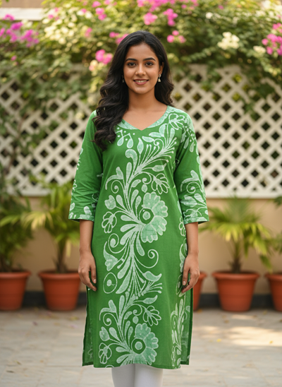 Add a refreshing touch to your ethnic collection with this green embroidered cotton kurti for women, featuring a graceful floral design and soft fabric. Perfect for festive occasions, office days, and casual gatherings, this kurti offers both comfort and timeless beauty.