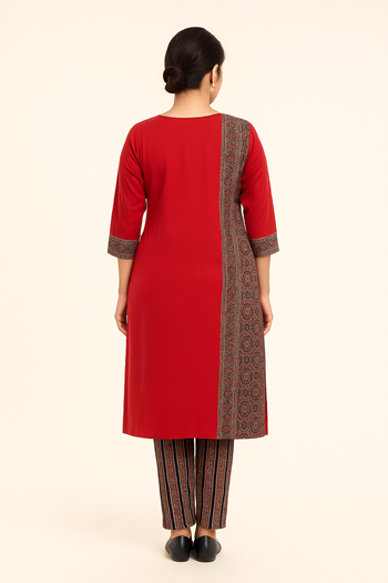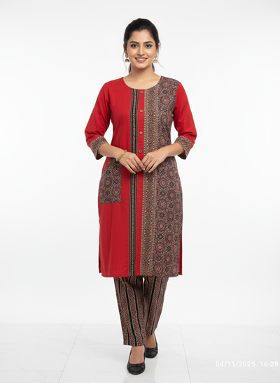 Important Note: Red Printed Cotton Kurti ( included Kurti & pant Full set)