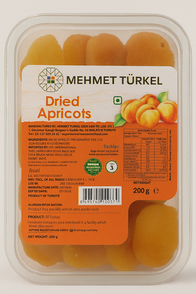 Enjoy the authentic taste of Turkey with Mehmet Türkel Dried Apricots, a premium-quality healthy snack packed with natural sweetness, fibre, iron, and essential vitamins. Perfect for guilt-free snacking, baking, and gifting.