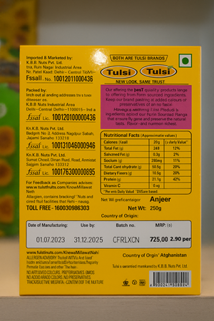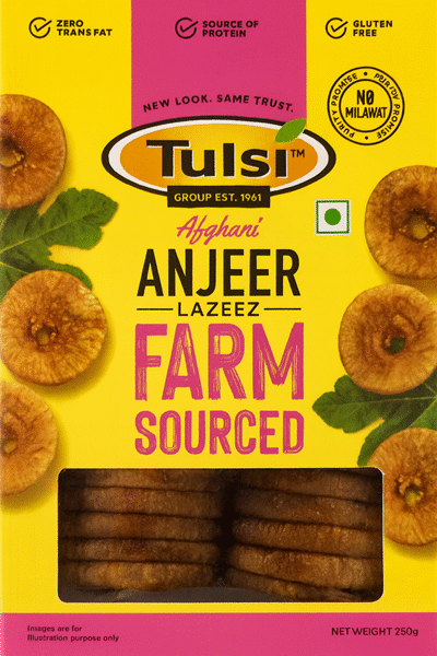 Bring home the goodness of Tulsi Afghani Anjeer Lazeez – Farm Sourced Dried Figs. Handpicked from the fertile lands of Afghanistan, these figs are carefully processed and packed to retain their natural flavor and nutritional value.
