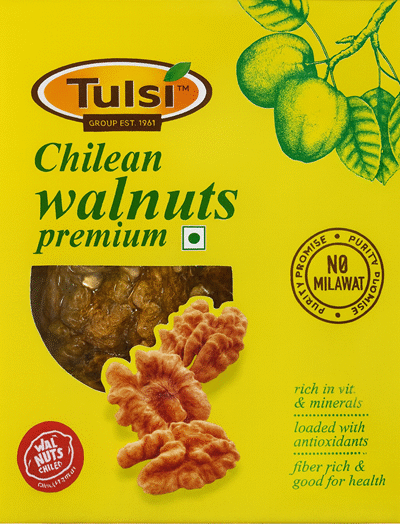Discover the wholesome goodness of Tulsi Chilean Walnuts Premium, brought to you by Tulsi – a trusted name since 1961. Sourced from the fertile lands of Chile, these handpicked walnuts are a powerhouse of nutrients that offer multiple health benefits.