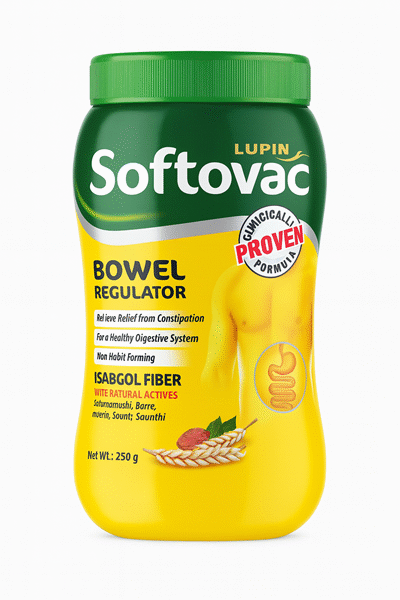 Lupin Softovac is a trusted bowel regulator formulated to offer natural relief from constipation and support overall digestive wellness. Infused with Isabgol fiber and a blend of scientifically proven Ayurvedic herbs, Softovac works gently on the stomach, promoting smooth bowel movement and reducing discomfort.