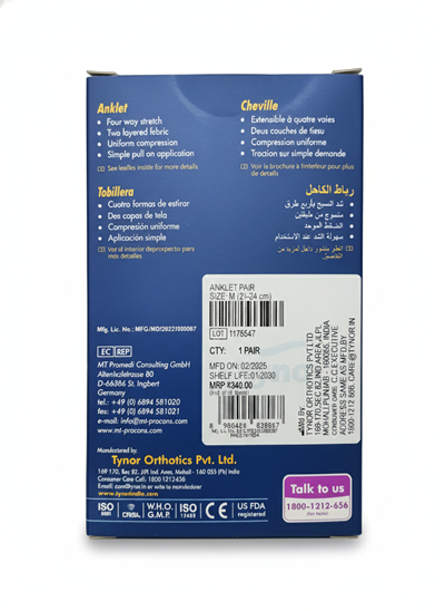The Tynor Anklet (D-03) is designed to provide targeted compression and support to the ankle joint, making it ideal for managing ankle sprain, tendonitis, swelling, ligament injury, and arthritis-related discomfort.