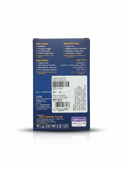Tynor Elbow Support provides firm compression and support to weak or injured elbows. Ideal for conditions like tendonitis, sprains, arthritis, and sport-related strain. Comfortable, breathable, and latex-free for safe skin contact.