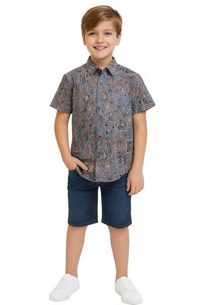 Add a splash of fun and fashion to your child’s wardrobe with this boys’ grey and orange cotton printed shirt. Made from premium breathable cotton fabric, it offers superior comfort and durability — ideal for active kids.
