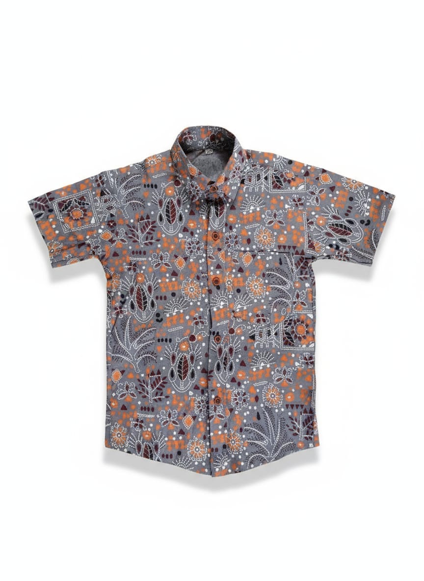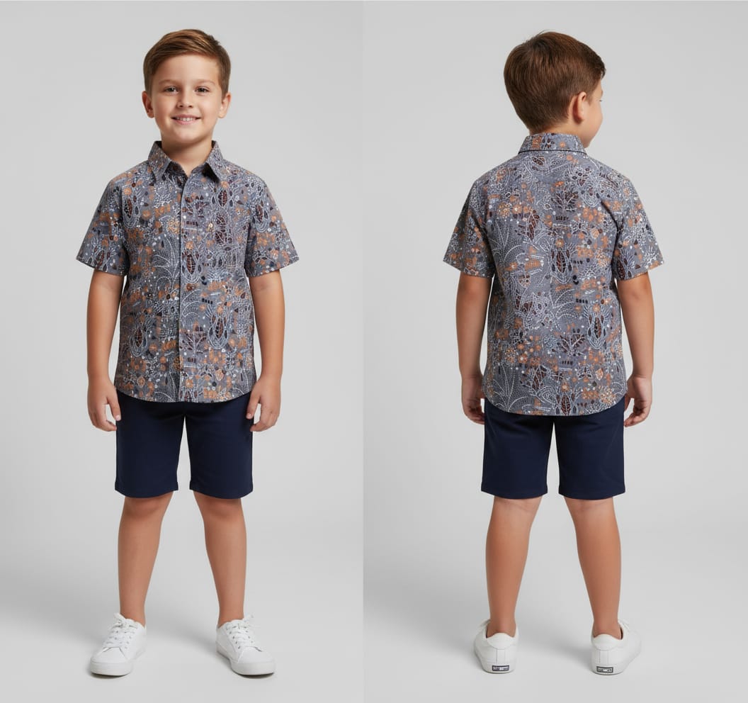 Let your child stand out in style with this grey and orange floral printed cotton shirt. Crafted for comfort and charm, it’s perfect for everyday wear, summer outings, and festive occasions.