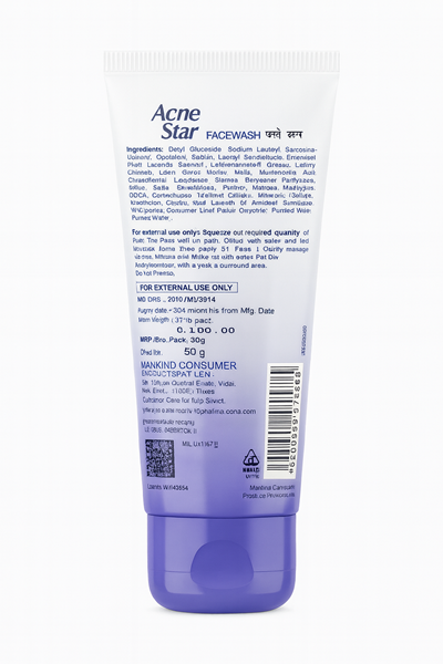 Acnestar Face Wash helps reduce and prevent acne and pimples by controlling excess oil secretion. It removes oil build-up, cleans clogged pores, limits further oil production, and keeps the skin soft and smooth. Its antibacterial, antimicrobial, and anti-inflammatory properties support overall skin health.