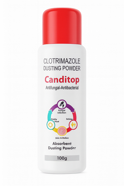 Candidtop Clotrimazole Dusting Powder is a dermatologist-recommended solution for fungal infections, sweat rash, and persistent itching. Formulated with Clotrimazole, a powerful antifungal agent, it effectively controls the growth of fungus and bacteria responsible for skin irritation.