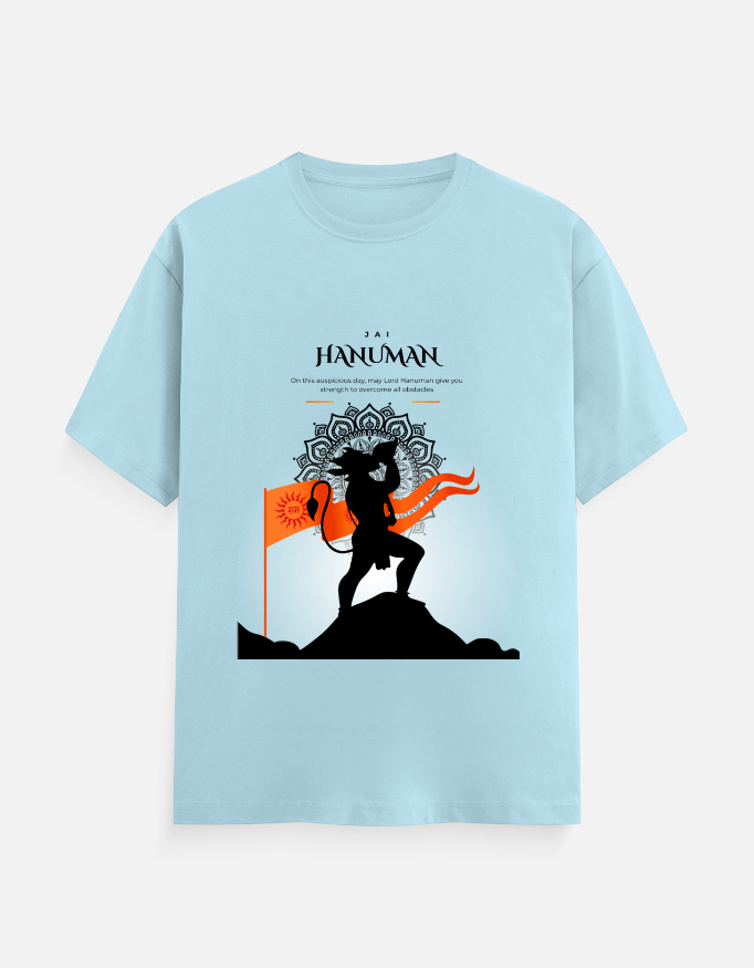 Bring strength, devotion, and fashion together with this Hanuman Jayanti Printed Cotton T-Shirt. Made from high-quality breathable cotton, it ensures ultimate comfort for daily use, festive occasions, or casual outings. The striking design showcases Lord Hanuman with a flag, symbolizing courage and devotion, making it a perfect pick for devotees and style enthusiasts alike.